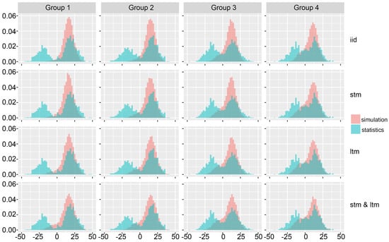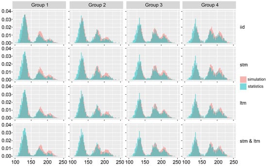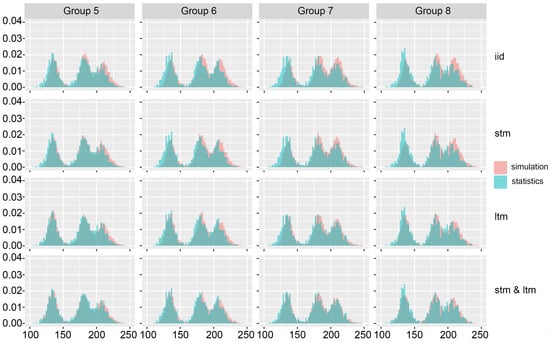 In the following sections, the real distribution of the total number of points played in a group of matches and the handicap with the simulated distributions obtained by conducting the following four different simulations will be compared:
