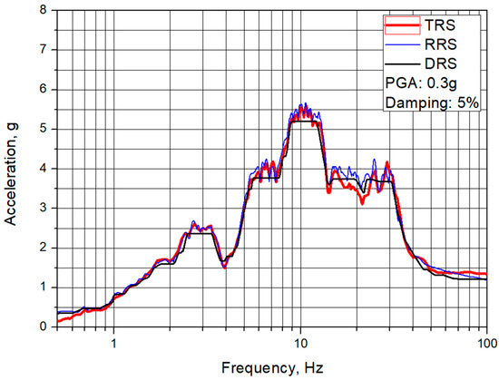 Figure 4 presents the comparison of the DRS, the required response spectrum (RRS) corresponding to Figure 3, and the test response spectrum (TRS) corresponding to Figure 4. As shown in the figure, we can see that the RRS and the TRS are almost the same spectral shape and these appropriately envelope the DRS.