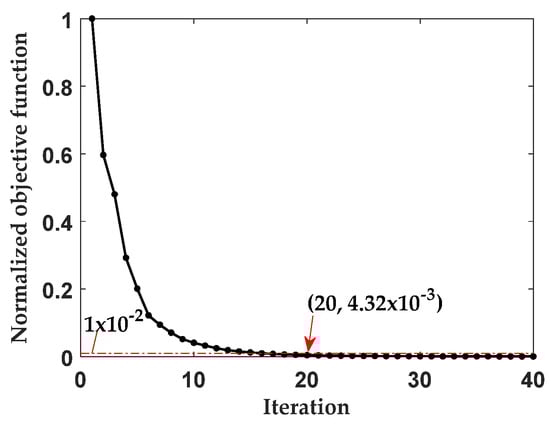where is the step length. When only the first-order derivative is considered, the corresponding method is called the steepest descent method. It is a straightforward way, but its convergence rate is so slow that it limits the application for large-scale problems []. To boost the convergence, the second-order derivative should be taken into consideration. However, the computation amount and storage space increase sharply because of the calculation of the inverse Hessian matrix . To handle this problem, quasi-Newton methods have been developed to approximate the Hessian matrix. The limited-memory Broyden–Fletcher–Goldfarb–Shanno (L-BFGS) method is one of the most popular methods. This method calculates the approximation of the inverse Hessian matrix by a limited number () of the gradient-difference and model-difference vectors associated with the latest iteration ( is generally defined between 3 and 20) [].