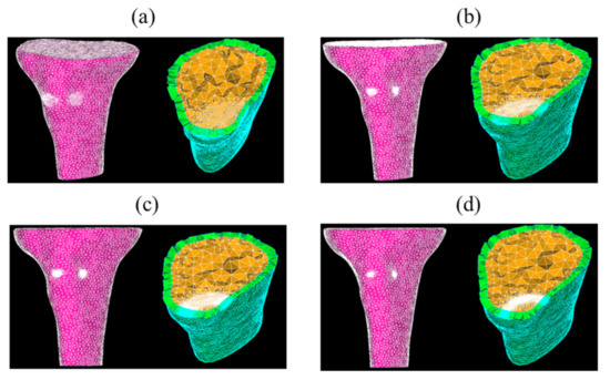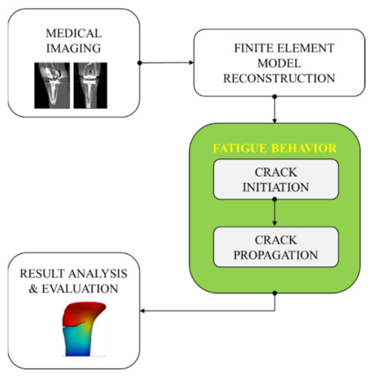 - Mischinski, S.; Ural, A. Finite Element Modeling of Microcrack Growth in Cortical Bone. J. Appl. Mech. 2011, 78, 041016. [Google Scholar] [CrossRef]