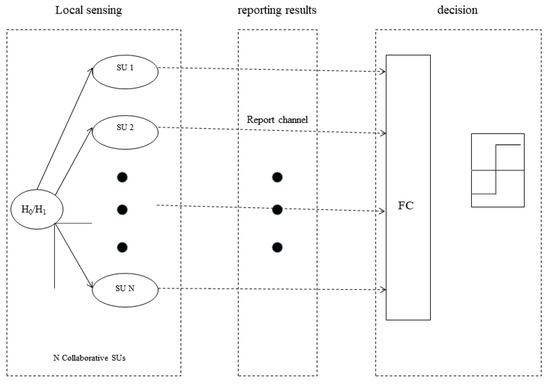 As shown in Figure 1, each SU directly transmits the local sensing information to the FC, and the FC makes the final decision and then sends it to each SU for the centralized CSS. The details of centralized CSS are as follows: