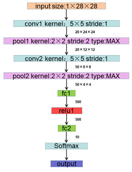 LeNet was proposed by LeCun, the founder of the convolution neural network, in 1994 to solve the visual task of handwritten digit recognition [38]. As shown in Figure 3, LeNet contains 2 convolution layers, 2 pooling layers and 2 full connection layers.