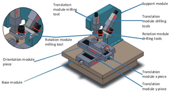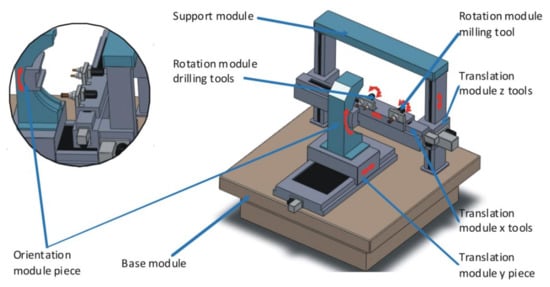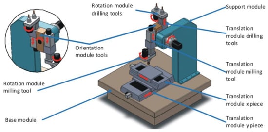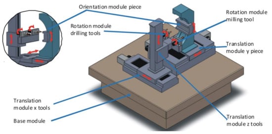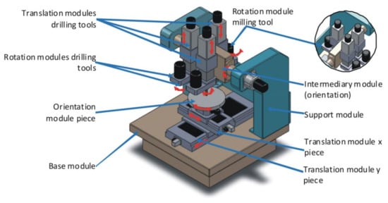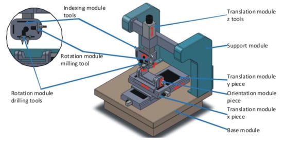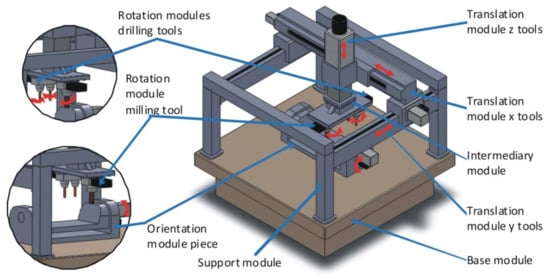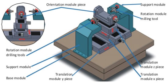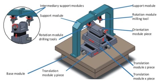 - Xu, Z.; Chen, L.; Xi, F.F.J. Towards rapid machine architecture design: Module layout synthesis for desired machine tool configurations. In Proceedings of the ASME International Engineering Design Technical Conference, Long Beach, CA, USA, 24–28 September 2005; AMER Soc Mechanical Engineers: New York, NY, USA, 2005; pp. 375–384. [Google Scholar]