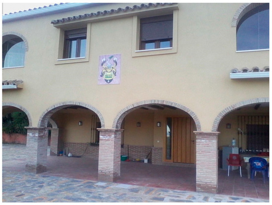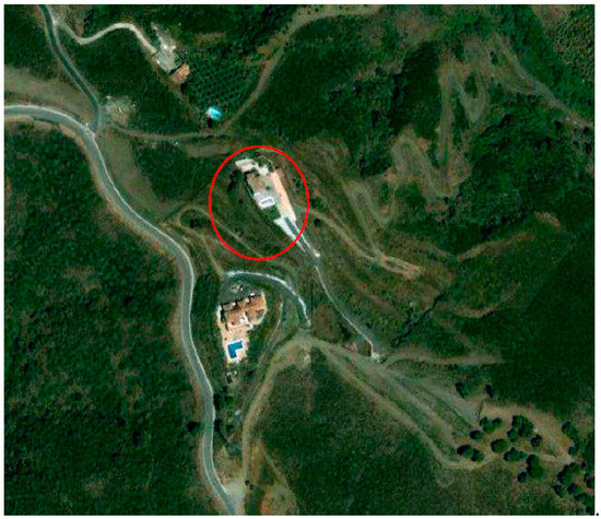 Aerial picture.Red circle: building location. April 2012.Source: geographical application Googlemaps/https://www.google.com/maps/place (accessed on 25 April 2012), coordinates 36.461094, −5.160498.