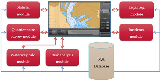 The aim of the work described in the paper was to build an application of the integrated navigation safety management system (INSMS) for coastal waters and harbour approaches in order to easily estimate the risk level of a selected part of the waterway in predefined hydrometeorological and navigation conditions. Such analyses require complex calculations, simulations, and expert knowledge [1]. They are usually carried out during a fairway’s definition and deployment phases but rarely while operating ships in the fairway on a daily basis [2]. The premise of the developed computer application was that it should support the daily work and decision processes of the persons responsible for the vessel traffic management in the approach and harbour waters. On the other hand, such a system could likewise be a very useful tool for designing new waterways and modifying existing ones. Due to different manoeuvring limits in various types of water areas, the INSMS for restricted water areas (approaches to ports) requires a systematic approach to the safety assessment [3]. Such an approach covers the use of models of navigational risk assessments appropriate and adequate to the specific navigation conditions. The developed INSMS application codenamed “NEPTUN” includes the following modules representing the various aspects analysed in terms of the safety level assessment (Figure 1):