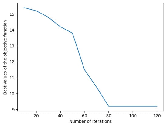 To assess the efficiency of the developed Simulated Annealing (SA) algorithm, we used the dataset introduced in [27]. In this dataset, customers and potentials sites coordinates are randomly generated between and . The goods demands are generated from the interval . The investment cost in the interval and potentials sites capacities are drawn from . After that, the direct cost is equal the Euclidean distance between the customers i and j, while the intermodal cost is computed using the following formula . The objective function values of the studied model are detailed in [31]. For this, we lunched the SA method for 10 runs and we choose the best solutions. As shown in Figure 5, saving best solutions in an archive set enables to get a decreasing values of the objective function. Accordingly, the developed SA method is a descent strategy.