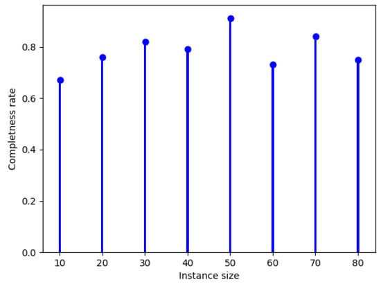 To further study the completeness rate effect on the generated solutions, we plot in Figure 7 the completeness rate over iterations of the archived best solutions for an instance with 40 nodes. This figure highlights that, while a sufficient number of rail links is necessary to reduce the total transportation cost (more than 50%), a fully connected rail network may not achieve an efficient transportation plan.