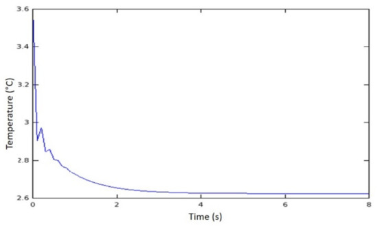 The implicit method is the Crank-Nicholson method, it has an order of approximation equal to Ο (Δt2 + Δx2). This method has the advantage of being unconditionally stable, i.e., the instability phenomenon does not appear in the solution that was seen for the explicit method. Figure 6 shows the temperature profile achieved under the conditions that introduced instability in the explicit scheme, that is, for Δx = 5/13 and Δt = 0.5.