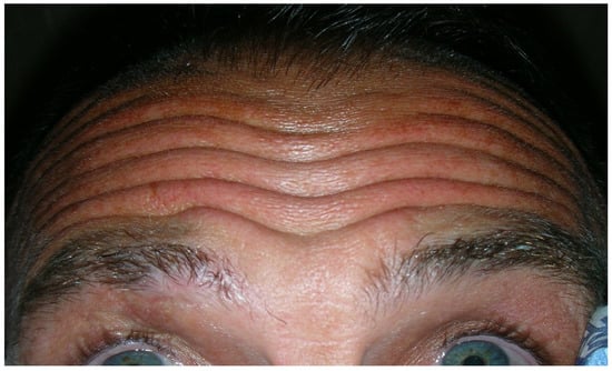 - Melfa, F.; Siragusa, D.; Caruso, D.G.; Tunesi, L.; Zerbinati, N.; Chirico, F.; Lo Faro, C.; Rauso, R. An Italian experience of a new personalized injective protocol (Botutouch) for botulinum toxin application in aesthetic medicine. Dermatol. Ther. 2020, 33, e14395. [Google Scholar] [CrossRef] [PubMed]
