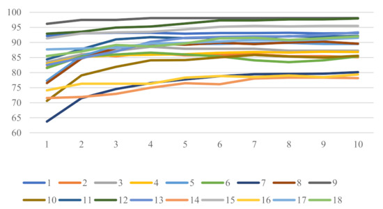 To answer the question “Does iterative learning help improve the model”, we report the performance of 18 tasks during training, whose results are shown on Figure 4. Specifically, we divide the full training process to 10 parts, and record current accuracy. Obviously, the model becomes more precise as training goes. On the other hand, we can also see some fluctuations, which suggests that our approach cannot completely eliminate the effects of mislabeling.
