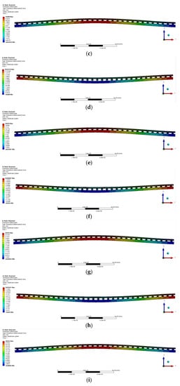 The maximum displacement in Figure 3e, which occurs when the wheel load is at the maximum in Figure 3c, was analyzed qualitatively and is shown in Figure 3f.