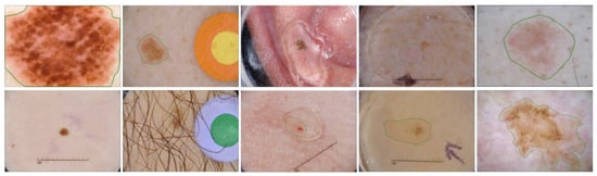 - Gutman, D.; Codella, C.F.; Celebi, E.; Helba, B.; Marchetti, M.; Mishra, N.; Halpern, A. Skin Lesion Analysis toward Melanoma Detection: A Challenge at the International Symposium on Biomedical Imaging (ISBI) 2016, hosted by the International Skin Imaging Collaboration (ISIC). arXiv 2016, arXiv:1605.01397. [Google Scholar]
