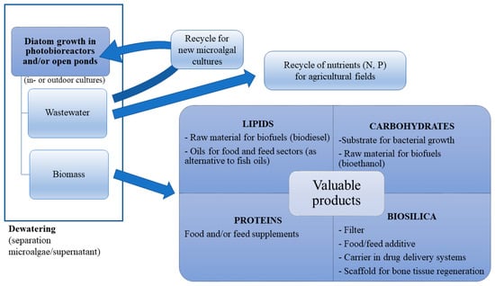 - Saxena, A.; Tiwari, A.; Kaushik, R.; Iqbal, H.M.N.; Parra-Saldivar, R. Diatoms recovery from wastewater: Overview from an ecological and economic perspective. J. Water Process Eng. 2021, 39. [Google Scholar] [CrossRef]