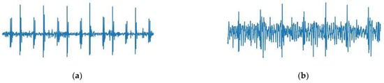 The representative waveforms of (a) a healthy person’s heart sound, and (b) a patient’s heart sound.