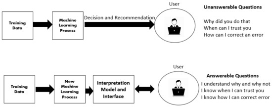 Deep learning techniques are considered black boxes as depicted in Figure 2. Explainability attempts to mitigate the black box nature of these algorithms. Explainability is needed for a variety of reasons. First, there are legal and ethical requirements along with laws and regulations that are required for deep learning cancer detection systems to be implemented in a clinical setting. An example of a regulation is the European Union’s General Data Protection Regulation (GDPR) requiring organizations that use patient data for classifications and recommendations to provide on-demand explanations [20]. The inability to provide such explanations on demand may result in large penalties for the organizations involved. There are also monetary incentives associated with explainable deep learning models. Beyond ethical and legal issues, clinicians and patients need to be able to trust the classifications provided by these systems [21]. Explanation is also needed for trust and transparency [22,23,24,25,26,27,28]. Explanation methods attempts to show the reasoning behind the model’s classification therefore building a degree of trust between the system, clinician, and patient. This can reduce the number of misinformed results that would be a possible consequence of non-explainable systems. Finally, explainable deep learning systems will provide the clinician with additional usefulness such as localization and segmentation of the lesion location [29,30,31,32]. How explanability brings value to the end user is depicted in Figure 3.