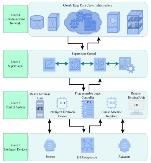 Level 4 (Communication Networks): Communication networks allow the different layers to be connected. Originally, ICSs used analog, digital or proprietary communication protocols to exchange information, however, in recent architectures, TCP/IP is widely used to increase the volume and speed of data transported [36]. The communication networks is the backbone of CPS infrastructure. It supports access to the IoT backbone [37] and facilitates the transmission and reception of medical and industrial data. Furthermore, it facilitates the use of specific communications, including virtualization technologies when migrating to an IaaS Cloud. Thus, this layer is a platform of services that provides an open interface [38] for the various services related to end users.