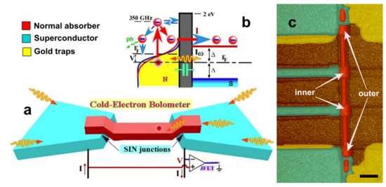 15. Anghel, D.-V.; Kuzmin, L. Capacitively coupled hot-electron nanobolometer as far-infrared photon counter. Appl. Phys. Lett. 2003, 82, 293–295. [Google Scholar] [CrossRef]