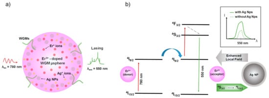 - Amjad, R.J.; Sahar, M.R.; Ghoshal, S.K.; Dousti, M.R.; Riaz, S.; Tahir, B.A. Enhanced infrared to visible upconversion emission in Er3+ doped phosphate glass: Role of silver nanoparticles. J. Lumin. 2012, 132, 2714–2718. [Google Scholar] [CrossRef]