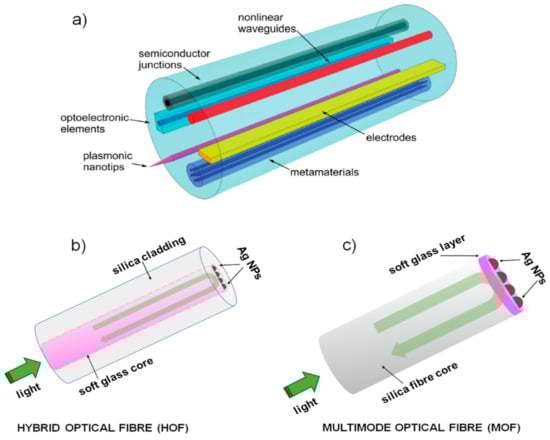 - Schmidt, M.A.; Argyros, A.; Sorin, F. Hybrid Optical Fibers—An Innovative Platform for In-Fiber Photonic Devices. Adv. Optical Mater. 2016, 4, 13–36. [Google Scholar] [CrossRef]