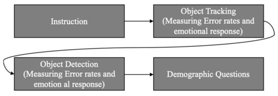 Object Detection: The error rate results indicate that the error rate of using the regular camera application was higher than that of using the new camera application, although the difference was not statistically significant. In object detection, the participants felt more pleasure, excitement, and independence when using the new camera application than when using the regular camera application. Using the new camera application helped the participants see the entire real-world scene. This indicates that the participants can use a wider field of view when using the new camera application, which induced emotional responses of greater pleasure, excitement, and independence. When the participants used the regular camera application, they felt more negative emotions. It was assumed that generating negative emotions from looking at the mobile phone screen might further shrink the field of view. The research of Que et al. asserted that the field of view can be shrunk by negative emotions []. Thus, although there was no significant effect in object detection between the two situations, there was a significant difference in the emotional response.