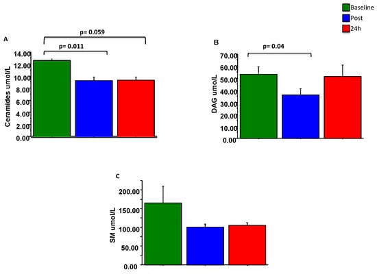 3.2.1. Total Ceramides, DAG and SM