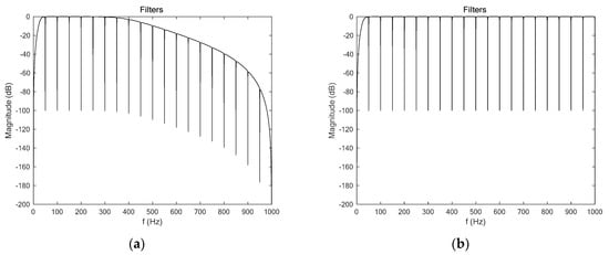 To reduce the low-frequency spectral range from the recorded signals, high-pass filters were chosen and implemented using the MATLAB environment []. To achieve the compromise between quality of filtering and numerical complexity, the 3rd order IIR Butterworth filtering was used.