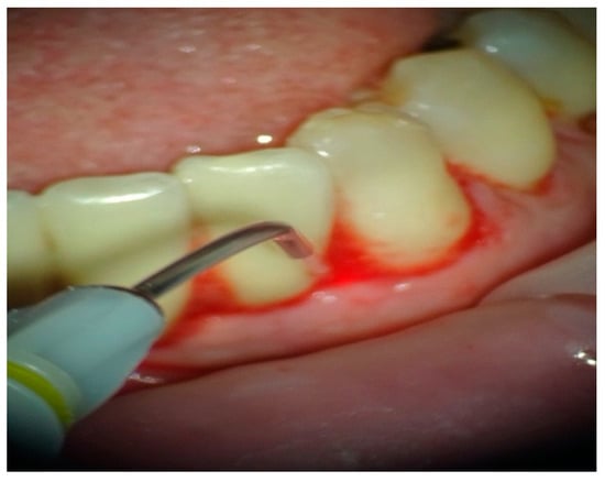 To overcome these limitations, researchers have therefore developed protocols with diode lasers suitable for using high peak powers with low average powers below 0.8 W and an insuperable limit for not having a thermal increase of the tissues exceeding 42 degrees [,,,,,,,]. In this way, the laser can be operated in the periodontal pockets without an appreciable thermal rise, if not a slight vasodilation, which will be represented by light post-treatment bleeding [,,].