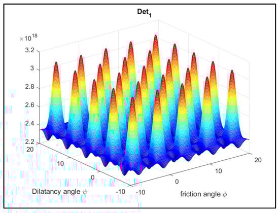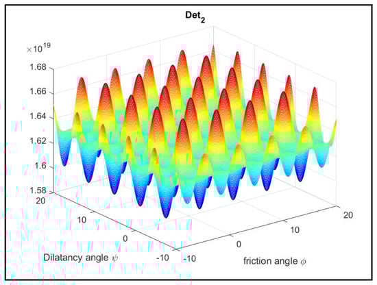 The two-by-two intersections of these load surfaces and the vertex form singularities that pose some problems for numerical integration. Each of the six load surfaces has a plastic flow rule associated with it. In addition, the behavior of the soil during loading involves friction, and so non-associated plastic flow rules must be used to avoid excessive expansion of the material [9]. For this purpose, an expansion angle, noted as ψ, that allows the introduction of six plastic flow potentials (I = 1, …, 6) associated with each yield function . These plastic potentials are written in the same way as their respective yield surfaces (the relationships in (Equation (16)).