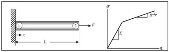 The yield strength is In the elastic region, the bar’s Young’s modulus is and in the plastic region, its plastic modulus is zero. Its yield function obeys Equation (7).
