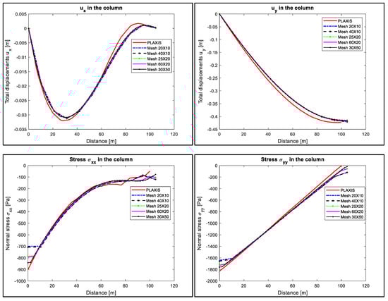 Displacements and stresses in the column considered for Matlab and PLAXIS models according to mesh size.