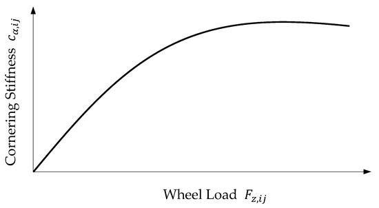 The cornering stiffness depends on the current wheel load . The dependency features a degressive characteristic. This characteristic is illustrated in Figure 2.