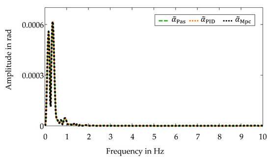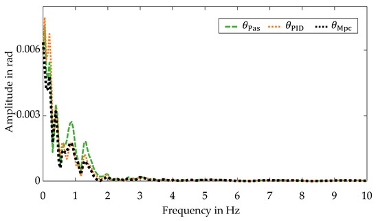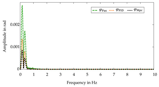 In principle, the control objective is satisfied by the central predictive control, since the self-steering behavior corresponds to the behavior of the passive vehicle despite utilizing an active control system. This is confirmed by examining the frequency spectra, which are illustrated in Figure 6.