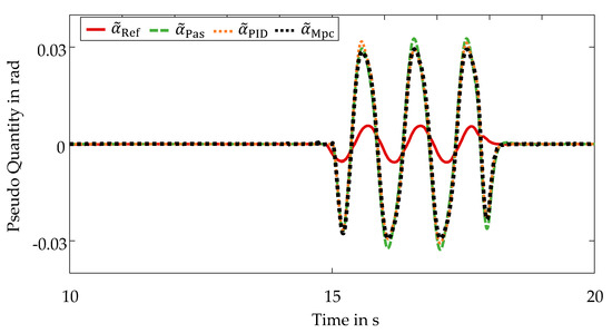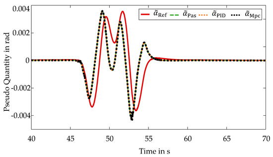 For the evaluation of the control quality with respect to the self-steering behavior, the courses of the pseudo quantity are first considered again. The resulting curves are illustrated in Figure 10.