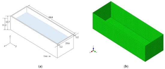 - Lee, J.H.; Cho, J.R.; Han, S.W. Time-domain earthquake response analysis of rectangular liquid storage tank considering fluid-structure-soil interaction. Comput. Struct. Eng. Inst. Korea 2020, 33, 383–390. (In Korean) [Google Scholar] [CrossRef]
