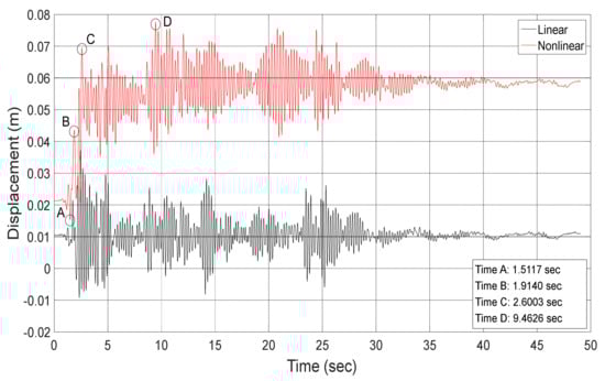 3.1. Comparison of Linear and Nonlinear Analyses Results