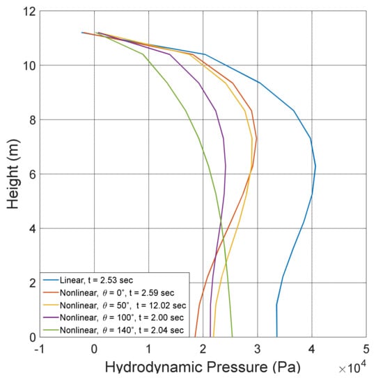 - The hydrodynamic pressure can be reduced significantly by the material nonlinearity. This reduction can also modify the base shear and overturning moment due to the hydrodynamic pressure and the resulting impulsive mass and its height in a simplified dynamic analysis of a liquid storage tank. Therefore, the material nonlinearity should be taken into account to ensure more accurate predictions of the hydrodynamic pressure applied to such a structure.