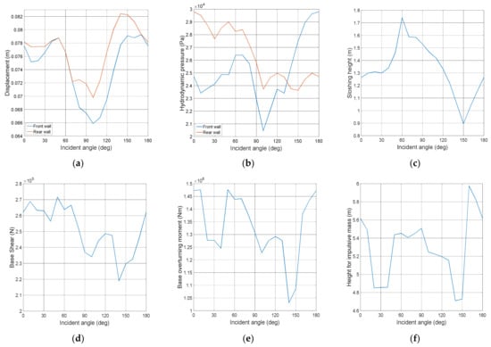 - The earthquake responses of a rectangular liquid storage tank are affected significantly by the incident angle of the earthquake ground motion. However, no consistent trend was noted in the responses of the displacement, hydrodynamic pressure, or sloshing height. Therefore, it is necessary to consider the directionality of the input ground motion for reliable predictions of the earthquake responses of such a system.
