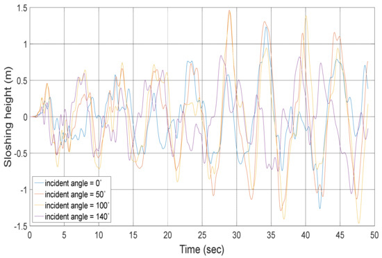 - The time history of the sloshing height can be affected significantly by the incident angle of the input ground motion. Therefore, the peak value should be estimated with the directionality of earthquake ground motions considered.