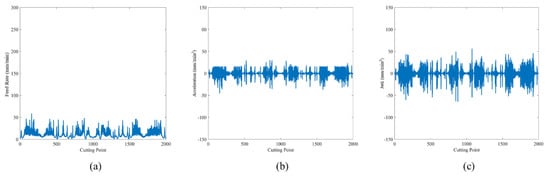 Computer numerical control (CNC) machining is a manufacturing process automatically controlling the machine tools for producing high-precision workpieces. To achieve high-speed and high-precision machining, on-site operators typically adjust the feed rate in computer-aided manufacturing (CAM) software based on their experiences derived from previous cutting experiments. Previous studies presented many advanced control methods such as optimal control and adaptive control of cutting conditions in order to improve machining accuracy [1,2,3]. Among them, dynamic feed rate scheduling uses two indicators for evaluating the feed rate: constant cutting force-based and processing path-based dynamic feed rate scheduling.
