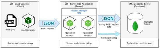After creating a VM, and installing and running the server software and DBMS, the experiment began. The initial data were loaded into the RAM of the client machine. After they were fully loaded, the sending of data with the specified parameters began.