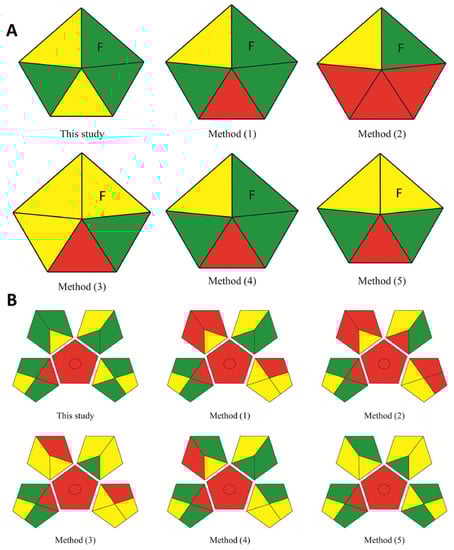 Greenness assessment of the developed and other reported DLLME methods for the determination of EDCs by Raynie (A) and GAPI (B) pictograms. Reprinted from El-Deen, A. K.; Shimizu, K. A Green Air Assisted-Dispersive Liquid-Liquid Microextraction Based on Solidification of a Novel Low Viscous Ternary Deep Eutectic Solvent for the Enrichment of Endocrine Disrupting Compounds from Water. J. Chromatogr. A, 2020, 1629, 461498 with permission from Elsevier [].