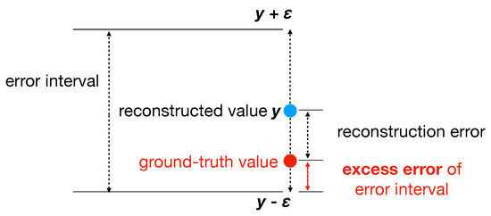 Excess Error of the Error Interval: To quantify the tightness of the estimated error interval, we used the notion of excess error. It is defined as the gap between the ground-truth value and the closest endpoint of the error interval, when the interval contains the ground-truth value. Figure 8 illustrates this notion. If the interval did not contain the ground-truth value, we considered the interval invalid. In practice, we could tolerate a small failure rate of the estimated error interval by setting a recall parameter (e.g., 90%). We could then find the smallest to achieve the given recall and compute the corresponding excess error. Clearly, we favored a smaller excess error as it resulted in a tighter error interval. We present the results on excess errors in the next section.