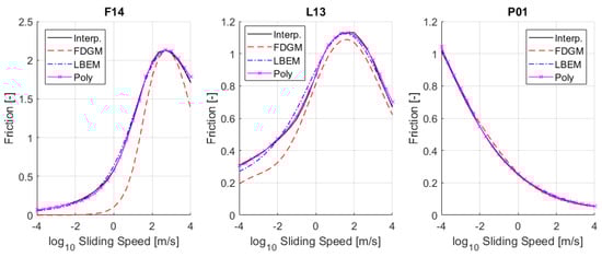 All models gave similar friction results, with the LBEM model providing the best agreement with the interpolated data. A discrepancy was produced by the FDGM model, which is most likely a result of extrapolation at frequency extremes. However, the FDGM model may include an increased number of parameters or "zones"; therefore, there is room for improving its fitting accuracy [9].