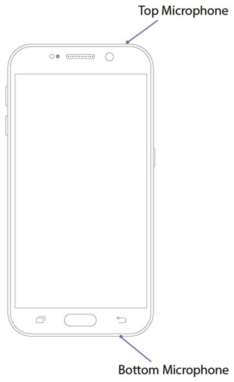 Device microphone locations. Note that the microphone placement deviates from the central axis and is position asymmetrically on the top and bottom of the device.