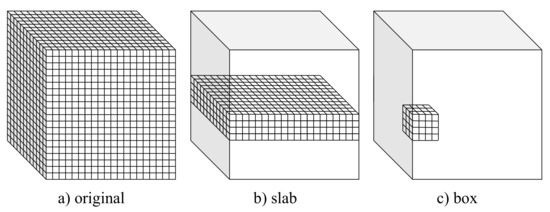 This study considered three alternative setups that allow adapting popular encoder–decoder CNN architectures to volumetric data. These setups, referred to as full 3D, slab-based, and box-based, are depicted in Figure 1 and described in detail in the following subsections. In all the considered setups, leave-one-out cross-validation was used to assess the model. Particularly, the models were trained on 19 volumes (with 3 volumes used for validation) and tested on the remaining one from the IRCAD dataset. The training–testing procedure was repeated 20 times, with different volumes used for testing. Finally, the results of all 20 experiments were averaged.