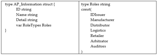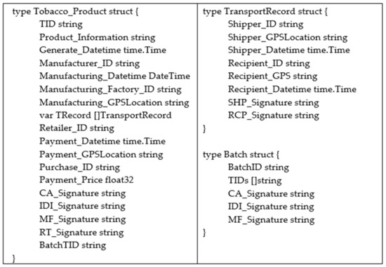 Furthermore, we designed the structure of data as shown in Figure 4 and Figure 5. The structure of the chaincode stores the complete information of tobacco including the manufacturer and logistics record with GPS location. Therefore, all information and the logistics records of tobacco can be tracked. Consequently, the logistics records cannot be forged and can be tracked correctly in our blockchain-based system.