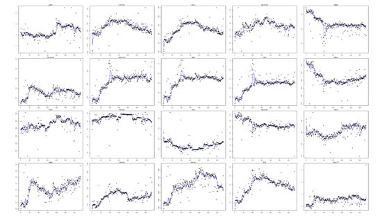 Raw data are collected at an approximate rate of, on average, 1500 samples per day. Since failure rarely occurred and the data collection period was over three months, the daily average was used instead of seconds for ease of analysis. Due to the security policy, all of the variable names are masked. Detailed data descriptions are in Table 1 and Figure 7 shows the variables of the data. In particular, different types of failures occurred in one piece equipment.