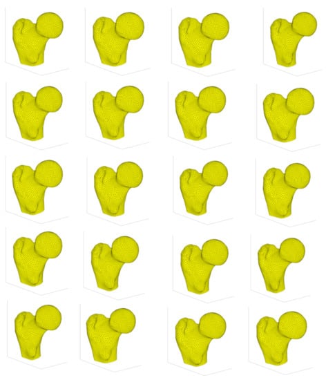 - Grassi, L.; Hraiech, N.; Schileo, E.; Ansaloni, M.; Rochette, M.; Viceconti, M. Evaluation of the generality and accuracy of a new mesh morphing procedure for the human femur. Med. Eng. Phys. 2011, 33, 112–120. [Google Scholar] [CrossRef][Green Version]