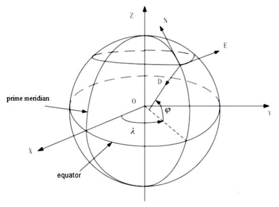 The error model of the strapdown inertial navigation system [30] was based on the ellipsoid model of Earth. The attitude error equation of the strapdown inertial navigation system is shown in Equation (1):