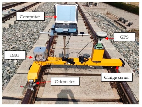 Harnessing the rapid development of precise positioning techniques, such as global navigation satellite systems (GNSS), and using the GNSS real-time kinematic (RTK) technique, HTA Burgdorf developed a track surveying platform in cooperation with terra vermessungen AG, Switzerland to improve the measurement efficiency for external parameters of tracks [15]. Yildiz Technical University developed a multisensor railway track geometry surveying system, which integrated the linear variable differential transformers, inclinometer, GNSS receiver, total station, and an adaptive Kalman filter model to estimate the geometric parameters of tracks [16,17].